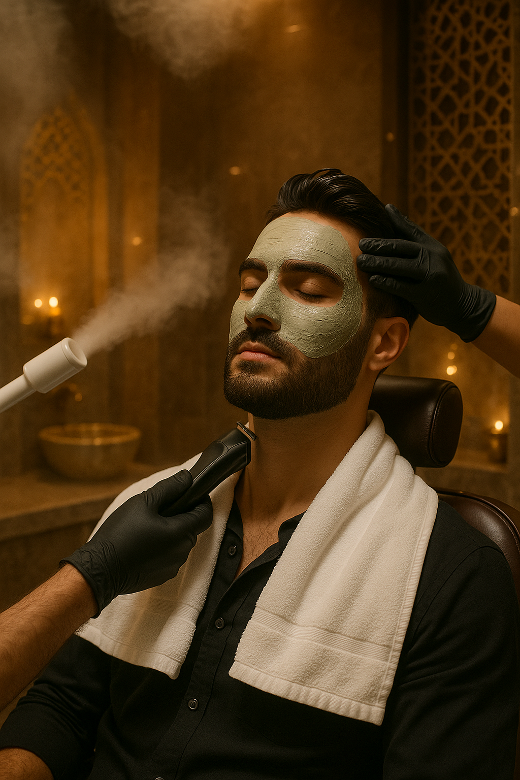 تشمل الباقة حالقة دقيقة للشعر والدقن بأسلوب عصري، كما يتم العناية بالبشرة من خالل تنظيف عميق